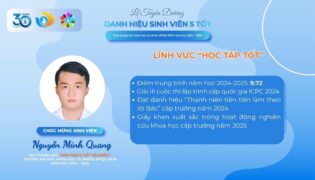 Không dừng lại ở thành tích kỹ thuật, Minh Quang còn được nhà trường ghi nhận qua danh hiệu “Thanh niên tiên tiến làm theo lời Bác” cấp trường năm 2024 — phần thưởng dành cho những sinh viên không chỉ học giỏi mà còn thể hiện lối sống tích cực, tinh thần trách nhiệm và tấm gương đạo đức trong cộng đồng. Đây là sự ghi nhận toàn diện cho một chàng sinh viên biết cân bằng giữa tri thức và nhân cách.
