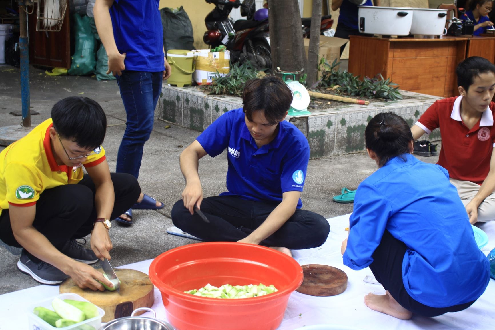 Gần 300 suất cơm nghĩa tình được tận tay các bạn tình nguyện viên sơ chế, nấu nướng từ rất sớm.